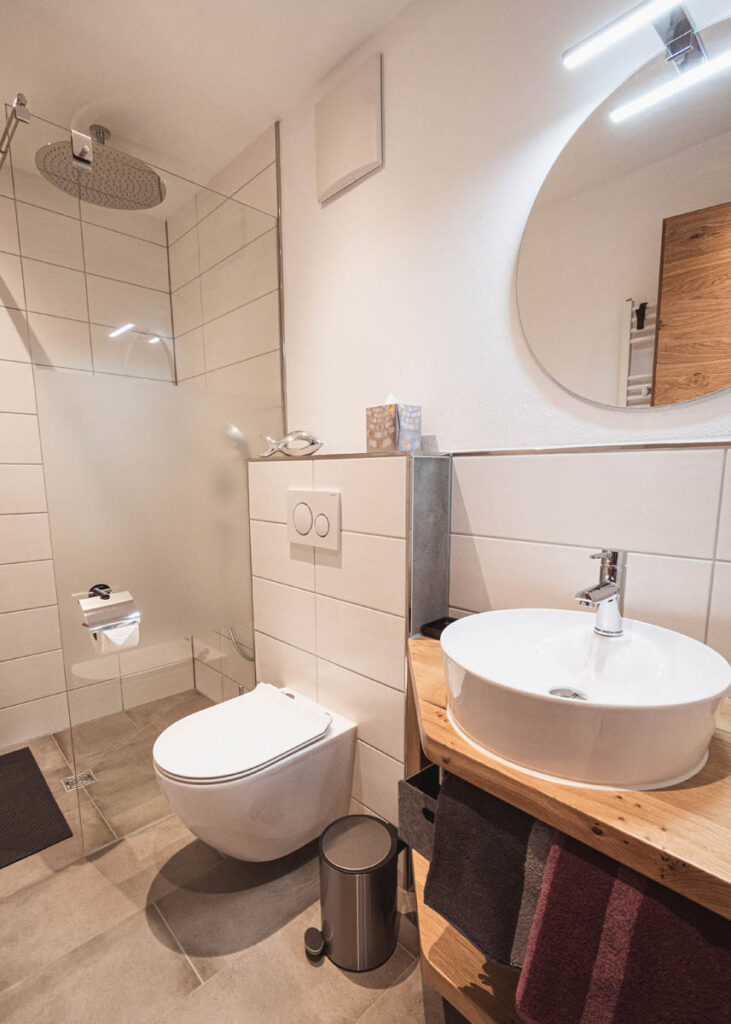 Jedes Schlafzimmer bietet bis zu 3 Schlafplätze und hat ein eigenes Bad mit begehbarer Dusche, Regendusche, Fön, Handtuchwärmer und WC (Badewanne). Flachbild-Fernseher und geräumigen Kleiderschrank mit ausreichend Bügel. In der Küche finden sie neben Waschmaschine, Spülmaschine, Cerankochfeld, Backofen, Mikrowelle, Kühl-Gefrierkombi, Topf-und Pfannenset alle notwendigen Utensilien.
